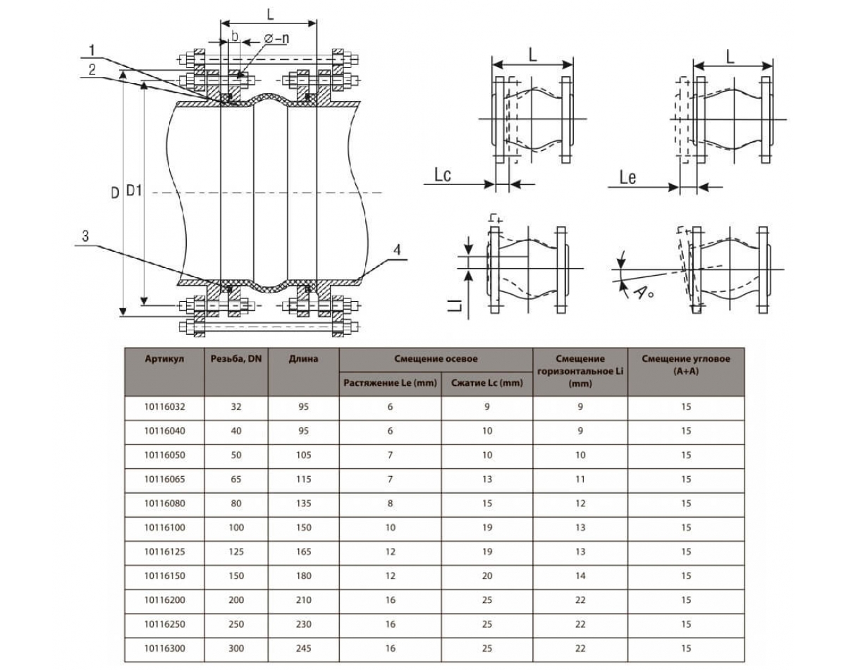 Компенсатор легко деформируется на сжатие или разжатие а так же изгибается по всей своей оси для подключения при смещенных трубах или отклонения оси.
