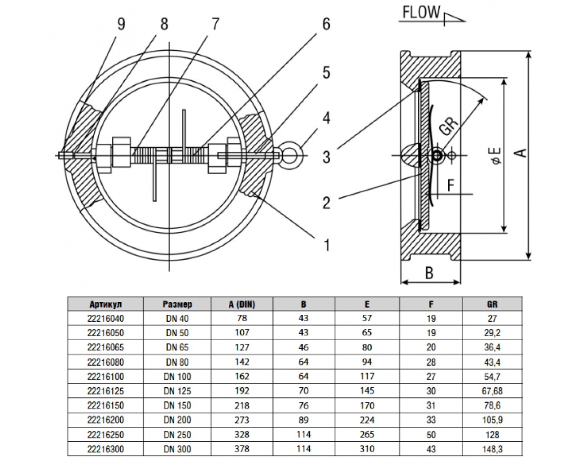 Обратный клапан межфланцевый створчатый NRD-W, DN 125, PN 16