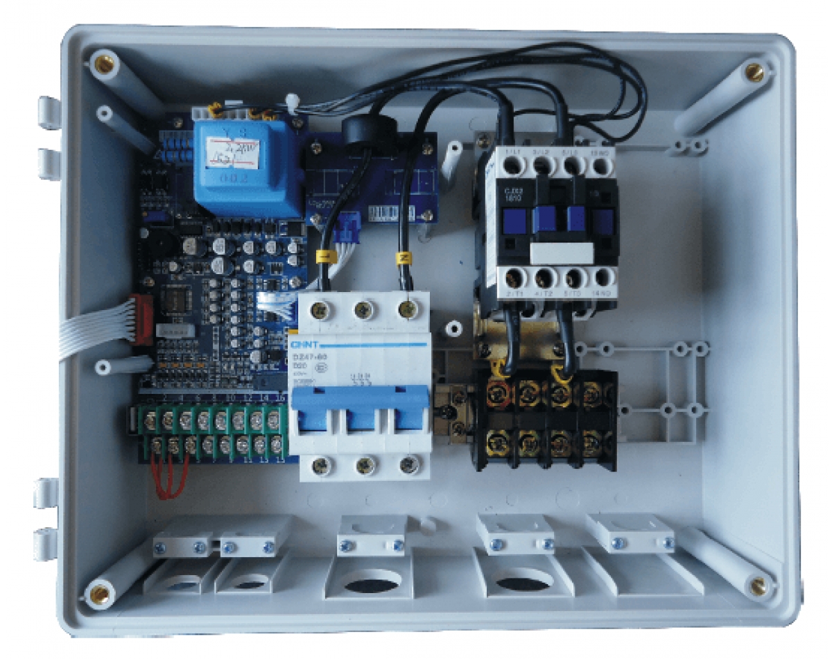 Шкаф управления позволяют автоматизировать управление одним однофазными насосом мощностью от 370 Вт до 2200 Вт, а также защищает электродвигатель насоса.