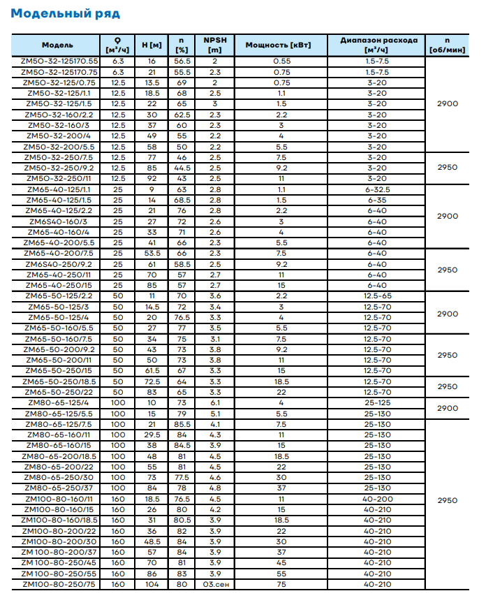 Новые насосы разработаны с учетом опыта эксплуатации серии ZC. Доработана гидравлическая часть и теперь комплектуются более современными электродвигателями которые на 6% потребляют меньше электроэнергии.