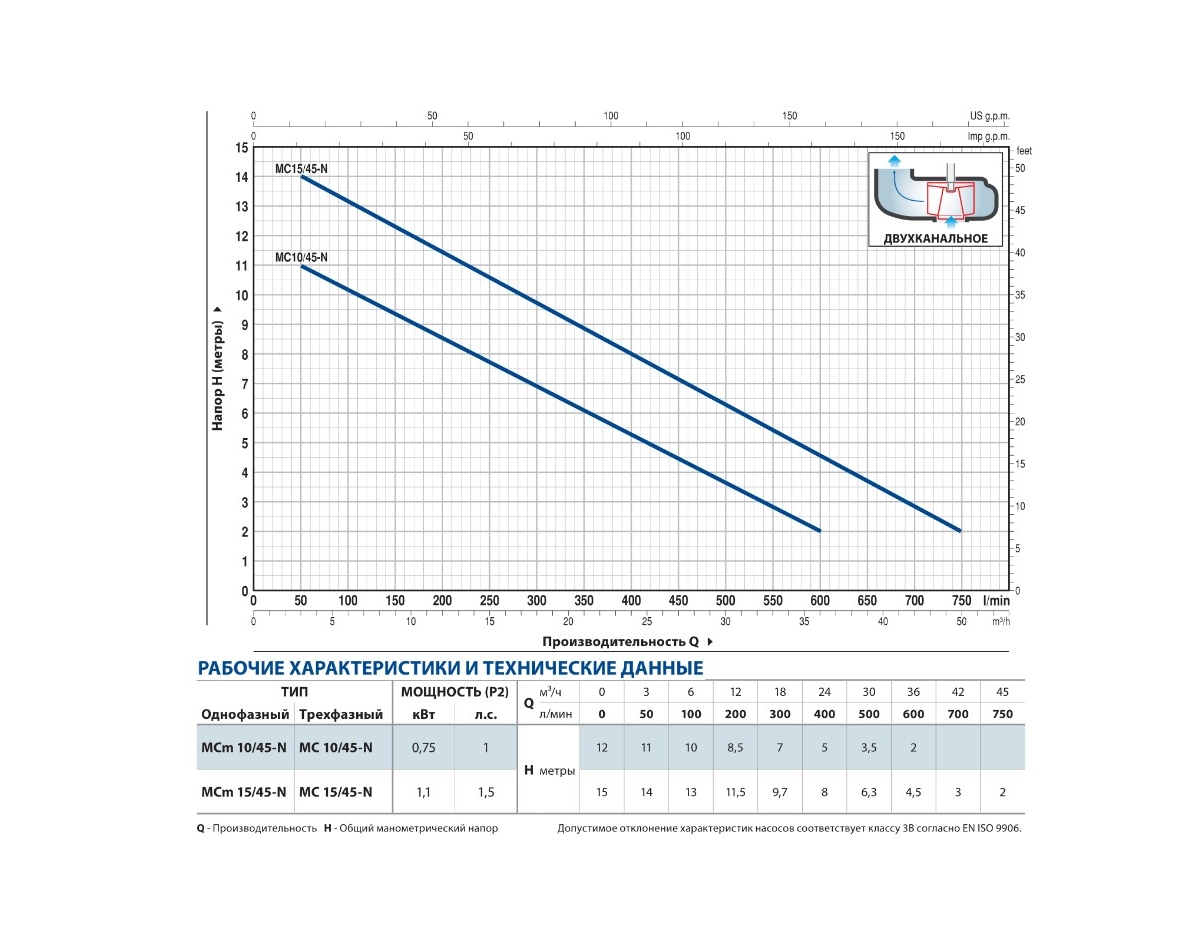 | Тип рабочего колеса | Закрытое двухканальное |