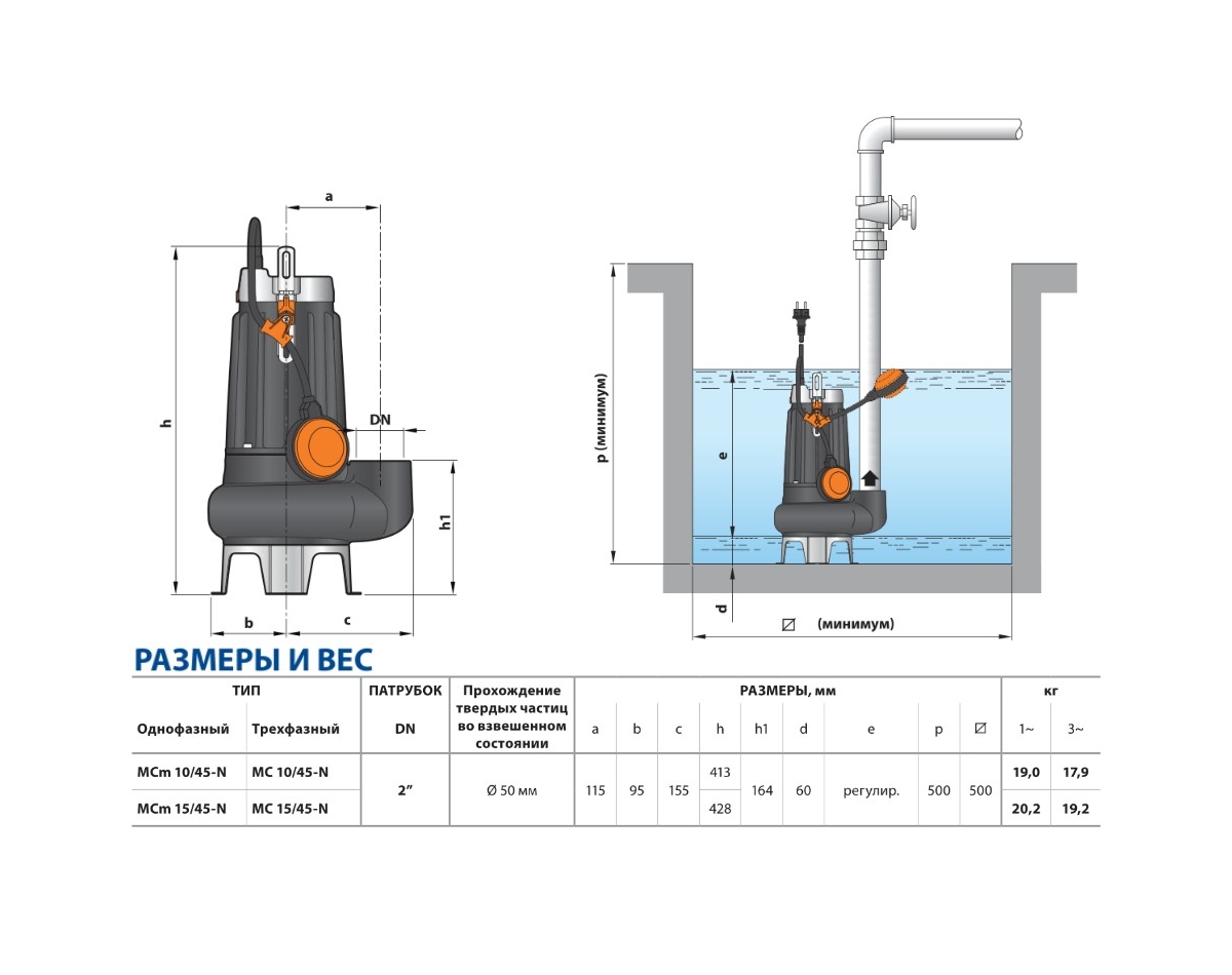 • Прохождение твердых частиц во взвешенном состоянии – до Ø 50 мм