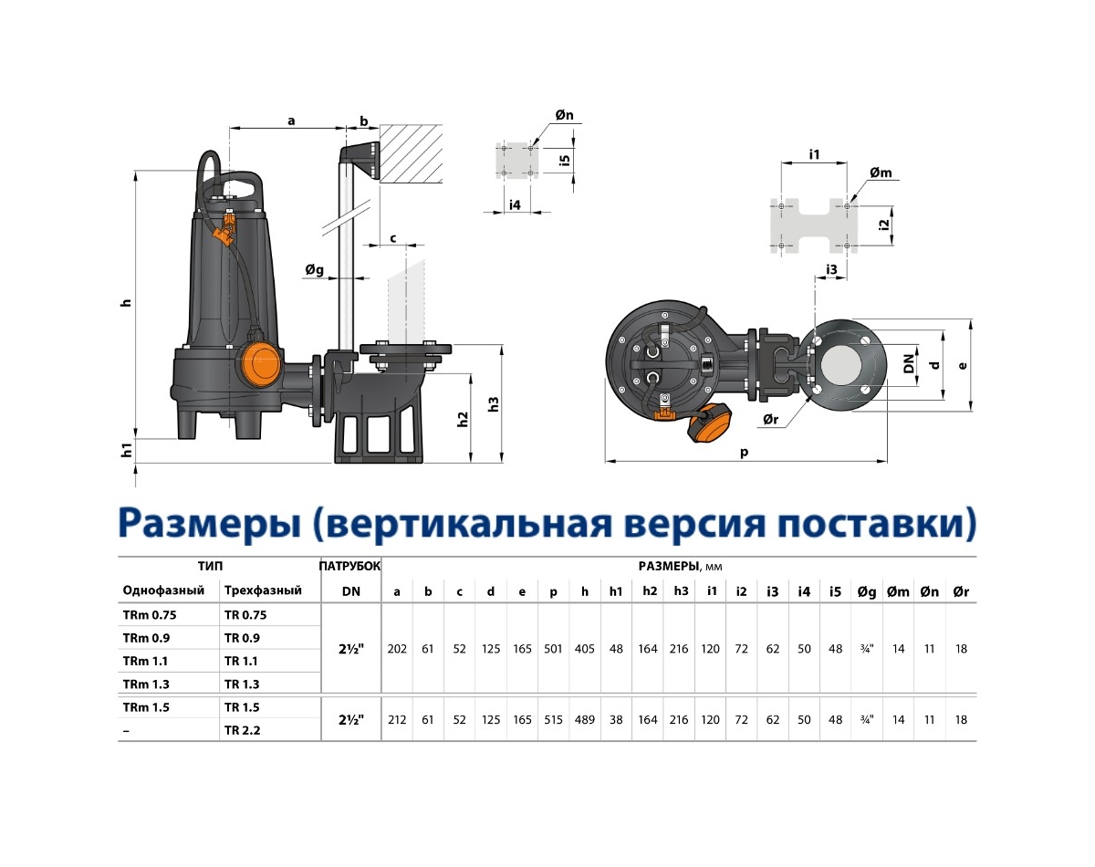 Погружные электронасосы серии TRITUS изготовленная из чугуна значительной толщины, высокопрочного и устойчивого к абразивному воздействию, а так же оснащены дробилкой из закаленной нержавеющей стали, которая полностью измельщает твердые частицы и волокна в сточных вода, перекачивая их под давлением в канализацию по трубам малого диаметра