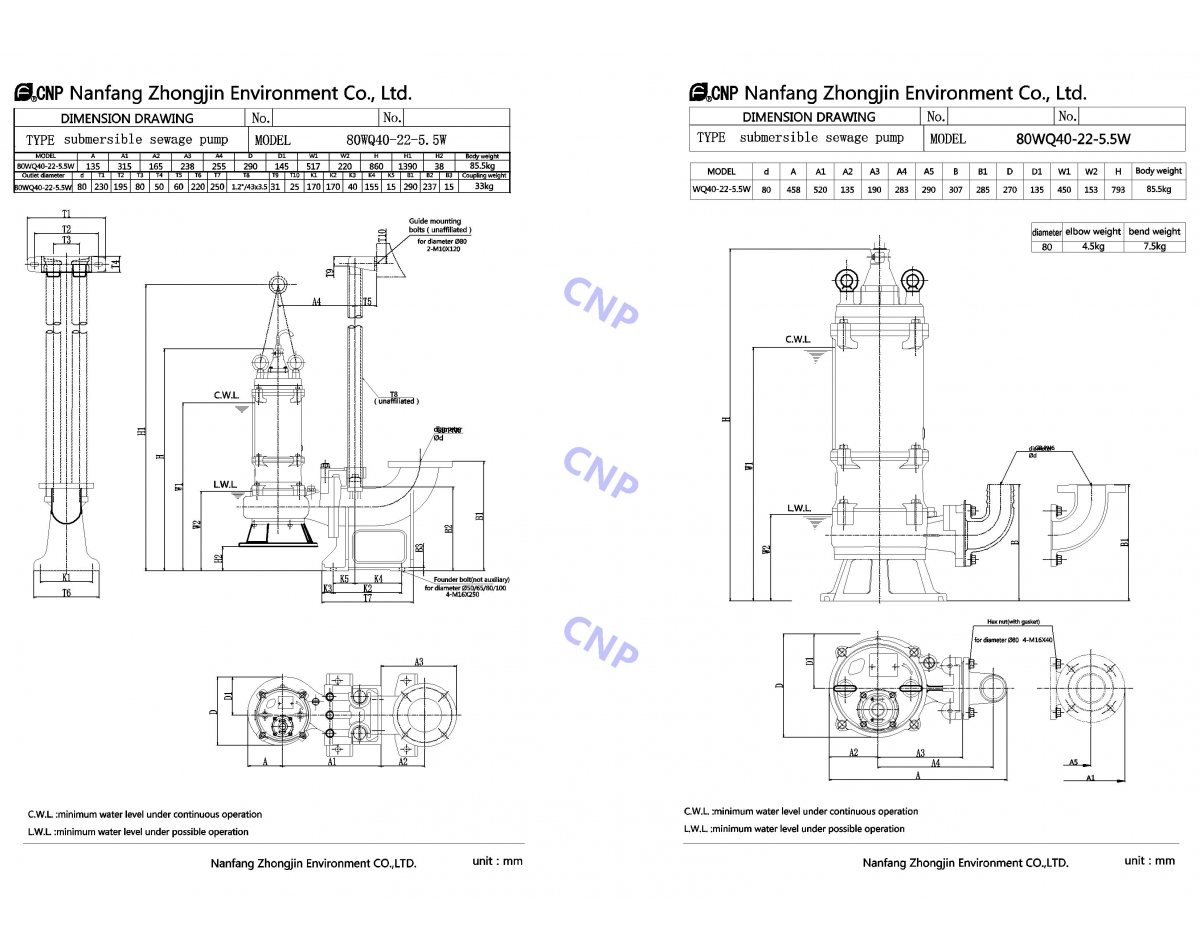 Промышленный канализационный насос CNP серии WQ это современный тип погружных насосов для откачки сточных вод, с надежной проверенной временем конструкцией насосной части и системой защит электродвигателя, делает этот насос одним из лучших в своем классе.