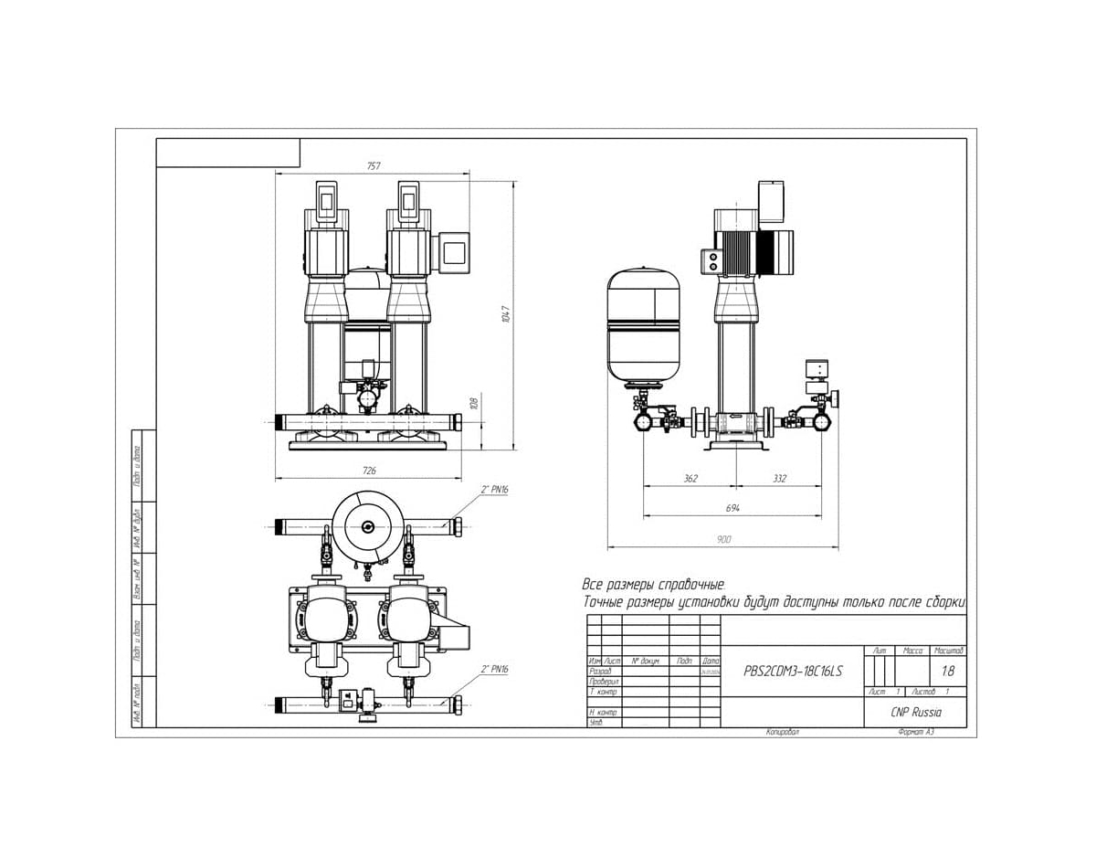Насосные установки повышения давления серии PBS - это малогабаритные установки, собранные на базе вертикальных многоступенчатых насосов CDM компании CNP и установленных на общей рамной конструкции. Возможное количество насосов от 2 до 6.