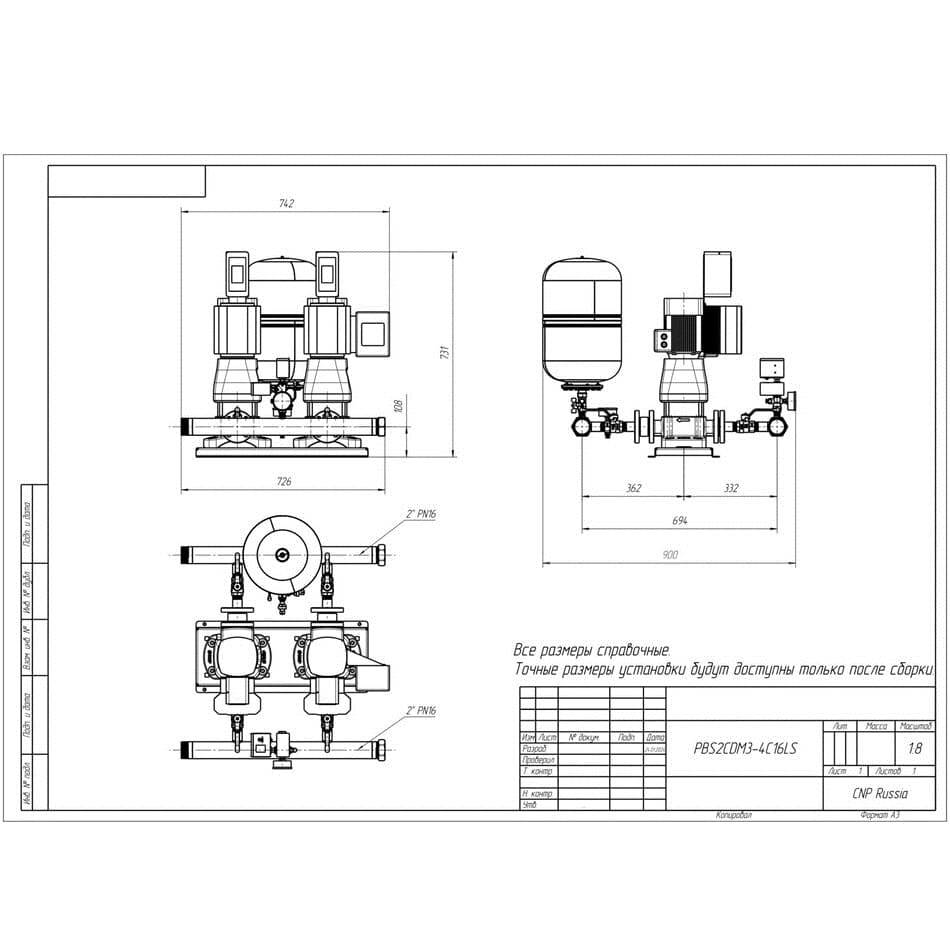 PBS2CDM3-4C16LS Установка повышения давления с двумя насосами