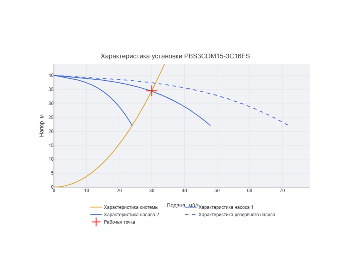 3 насоса | 30 куб.м\час | 34 метра | 3*3 кВт |