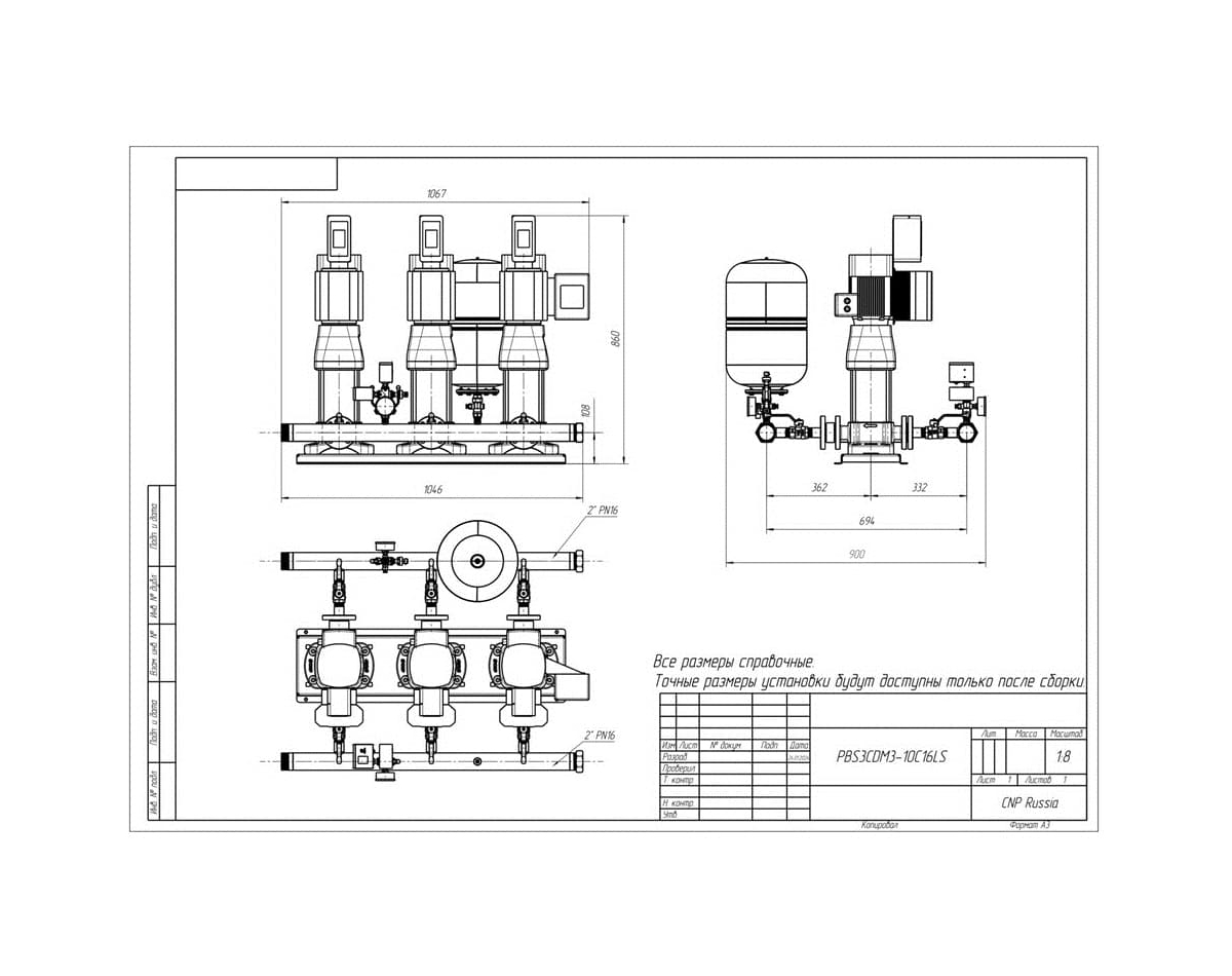 3-х Насосная установка повышения давления PBS3CDM3-10C16LS |