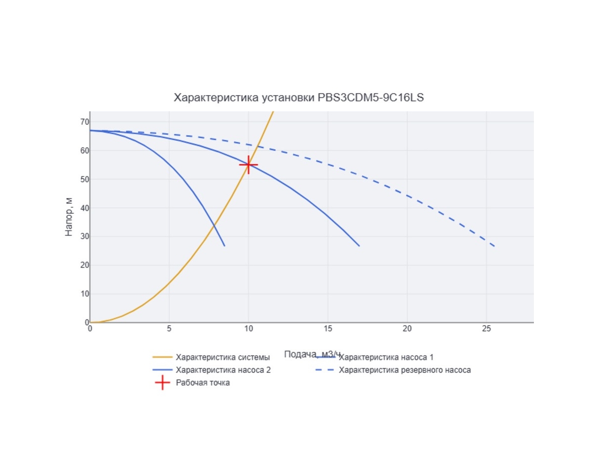 3 насоса | 10 куб.м\час | 55 метров | 3*1.5 кВт |