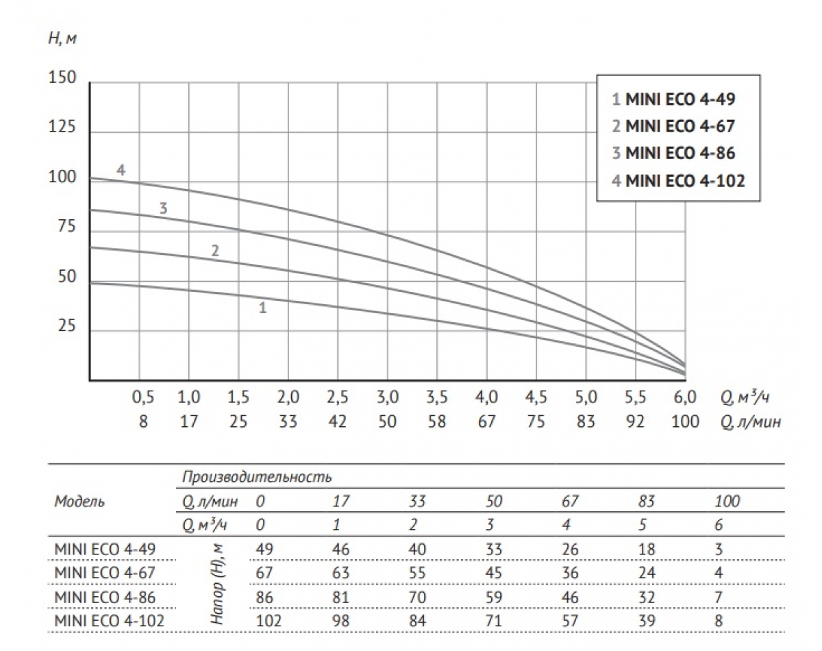 Погружной скважинный насос MINI ECO диаметром 3 дюйма или 76 мм. с плавающими рабочими колесами из износостойкого пластика, со встроенным пусковым конденсатором, электро двигатель однофазный 1*230В, подходит для использования в бытовых целях.