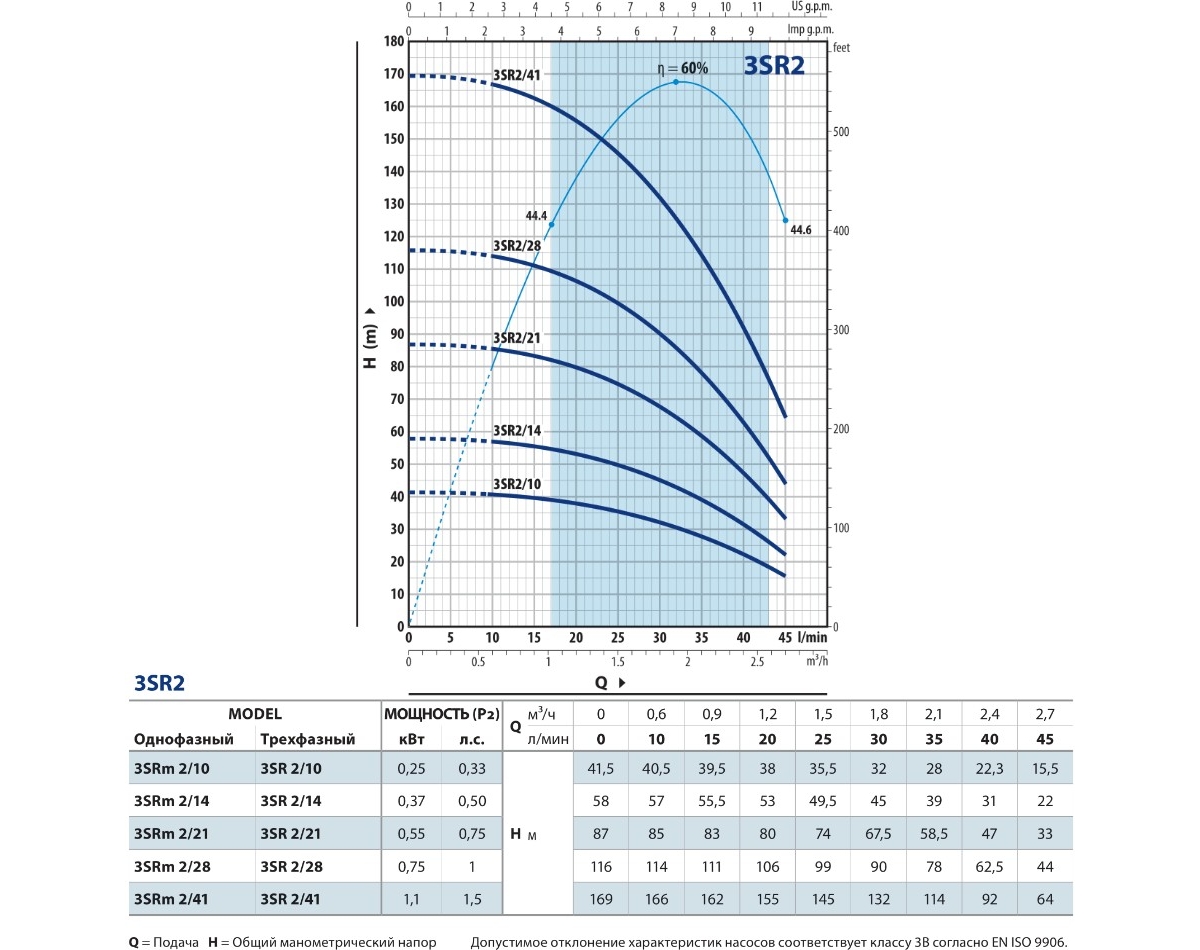 | Глубина всасывания \ погружения (метров) | 60 |
