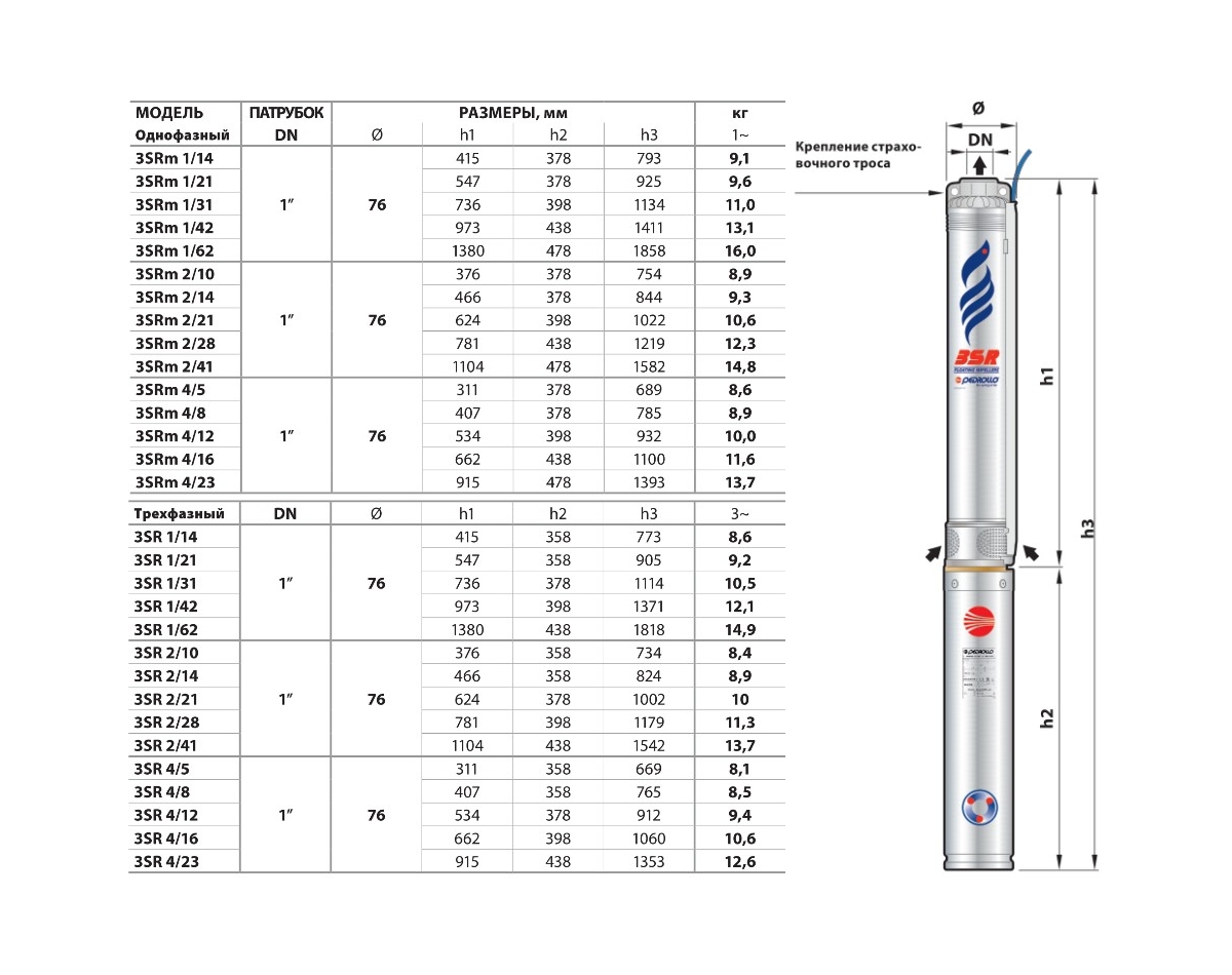 Насосы серии PEDROLLO 3SR погружные насосы применяются для подачи под давлением чистой воды