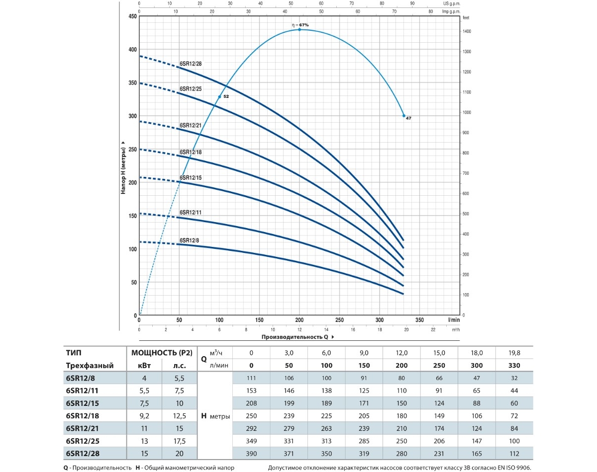 | Диаметр насоса (дюймов/мм) | 6 |