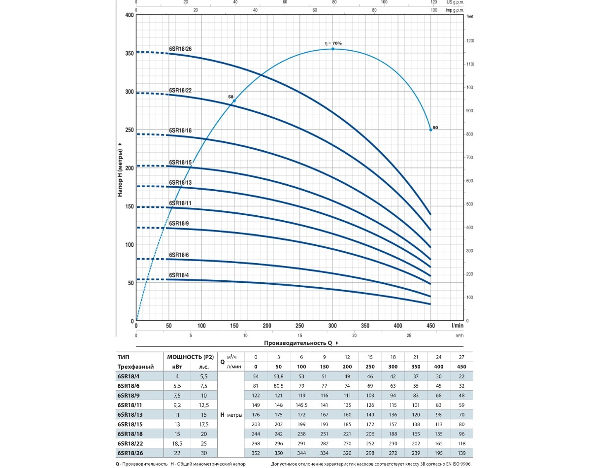 | Диаметр насоса (дюймов/мм) | 6 |