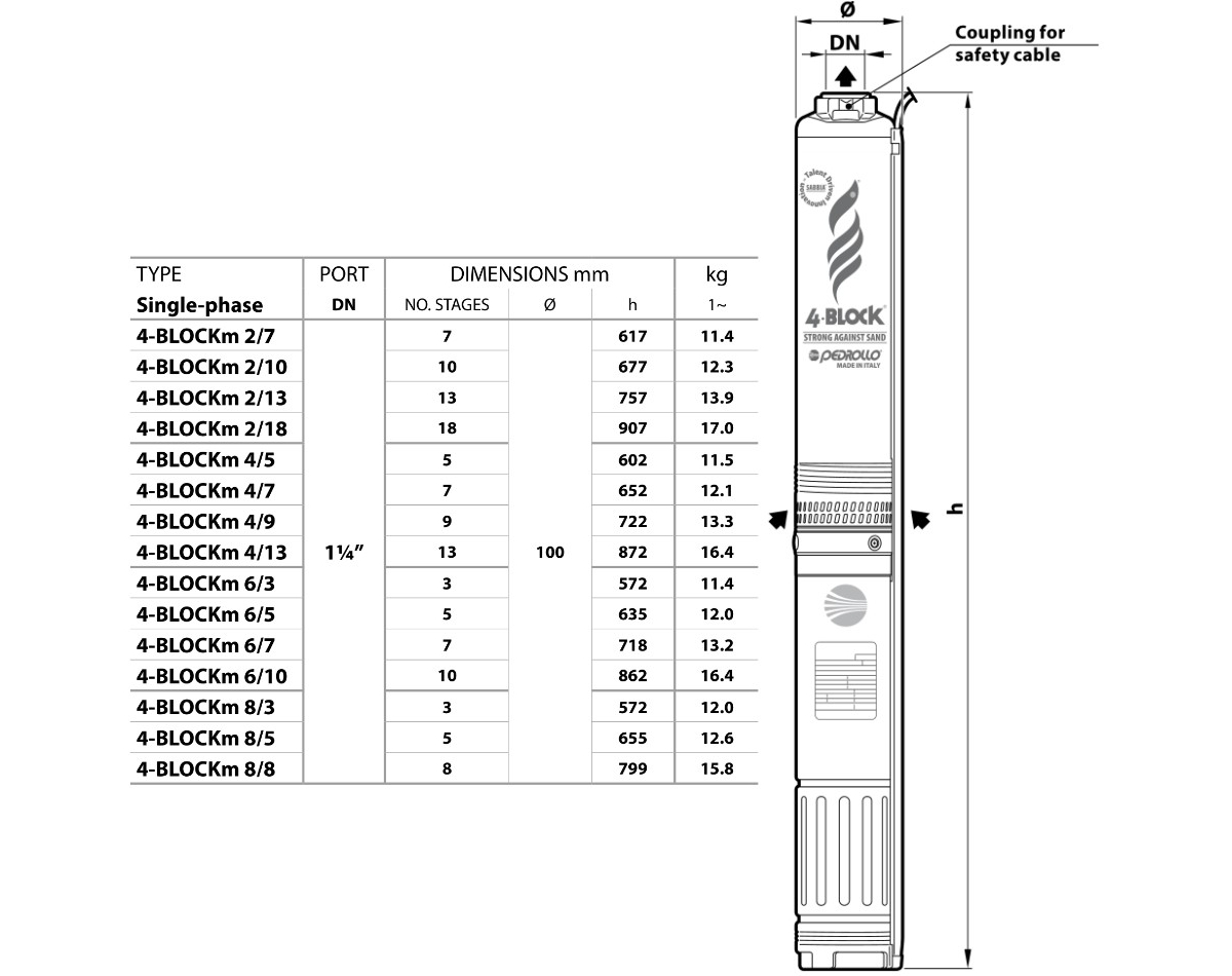 Скважинный насос PEDROLLO 4BLOCKm 2/10
