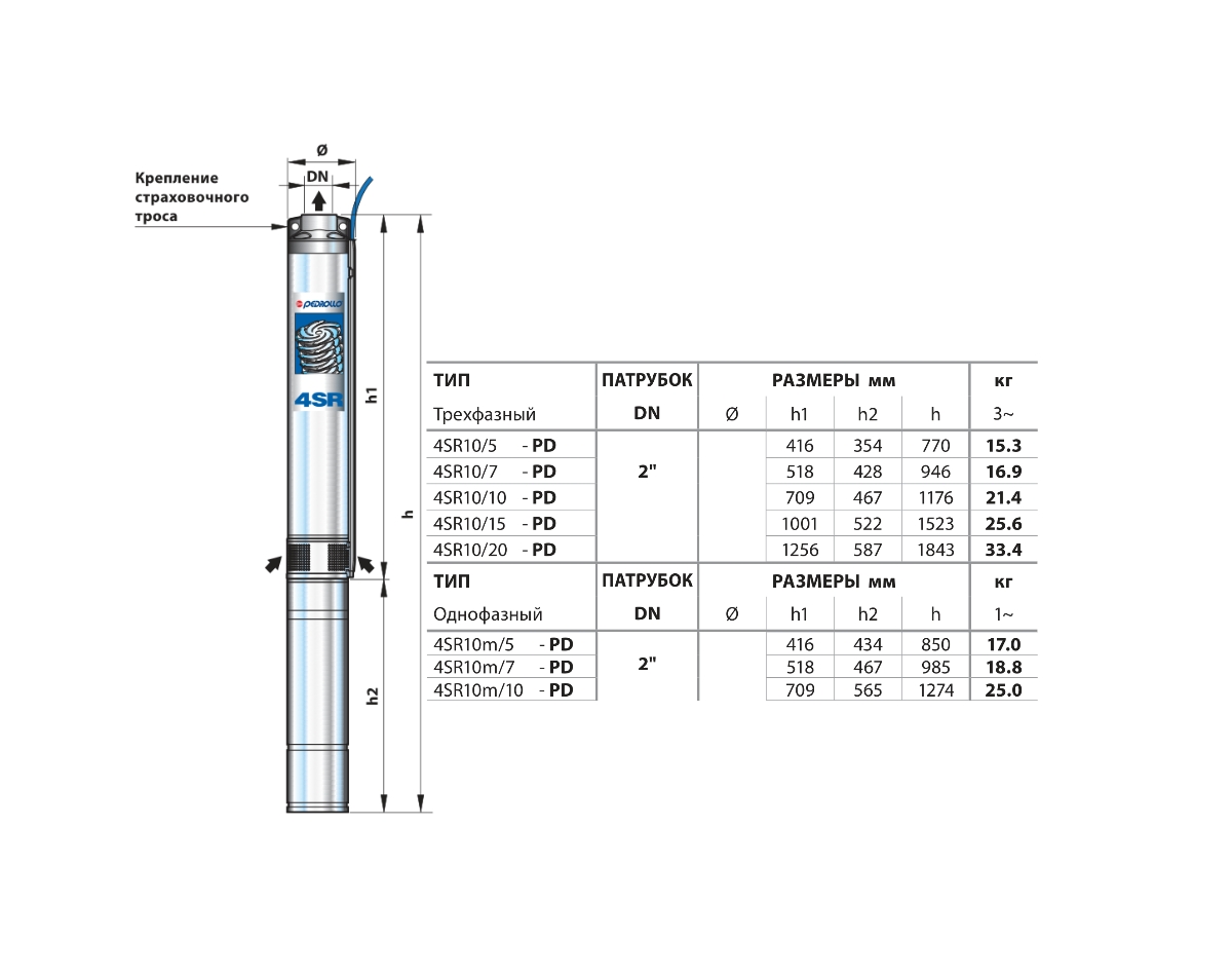 Погружные скважинные насосы 4SR производитель PEDROLLO (Италия) — предназначены для подачи чистой холодной воды (без абразивных и волокнистых включений) из скважин, глубоких колодцев и открытых водоемов.