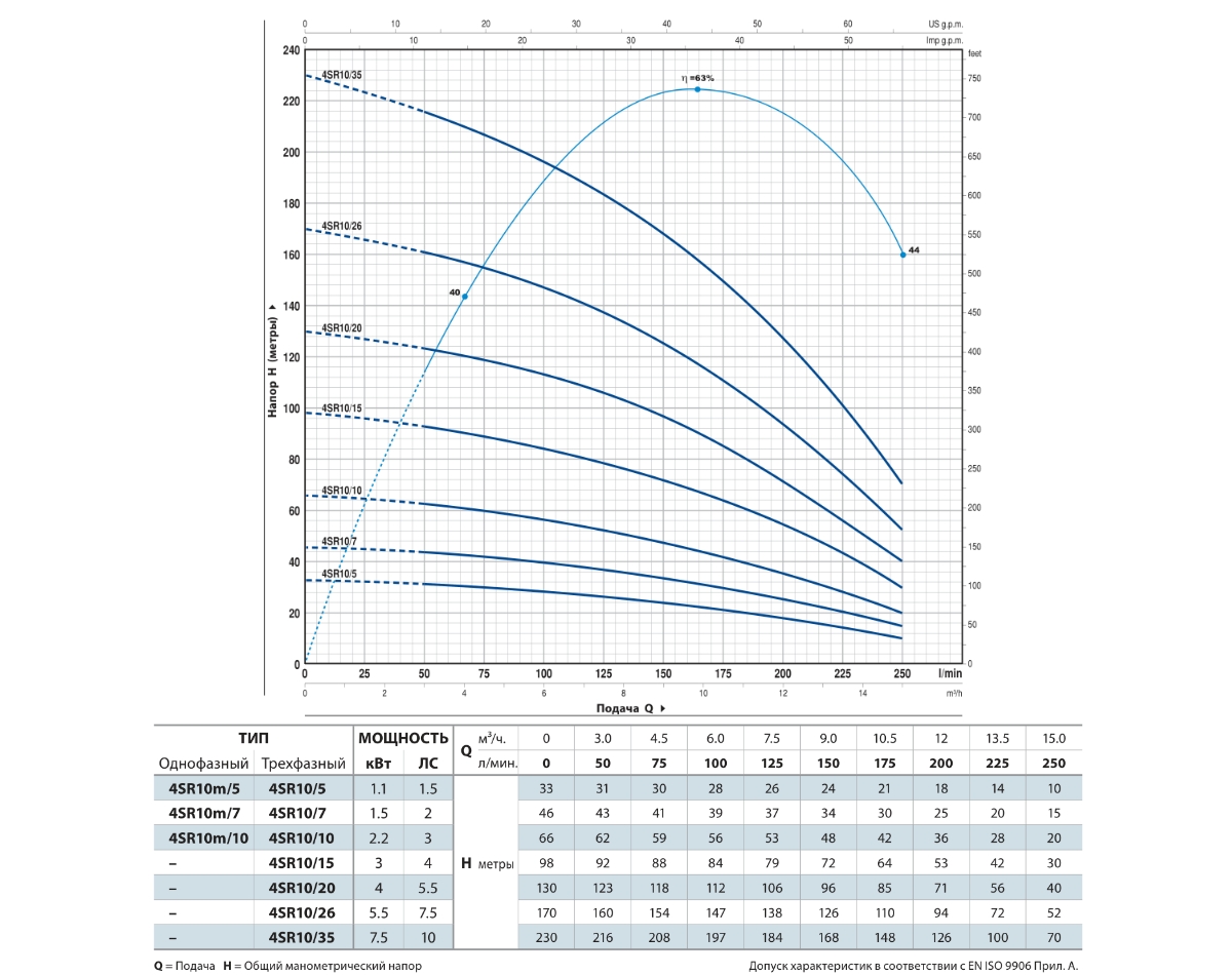 Всасывающее отверстие располагается в средней части насоса и защищено фильтрующей решеткой. В конструкции насосов 4SR нет материалов, способных оказать негативное влияние на качество перекачиваемой воды – насосы полностью соответствует гигиеническим требованиям.