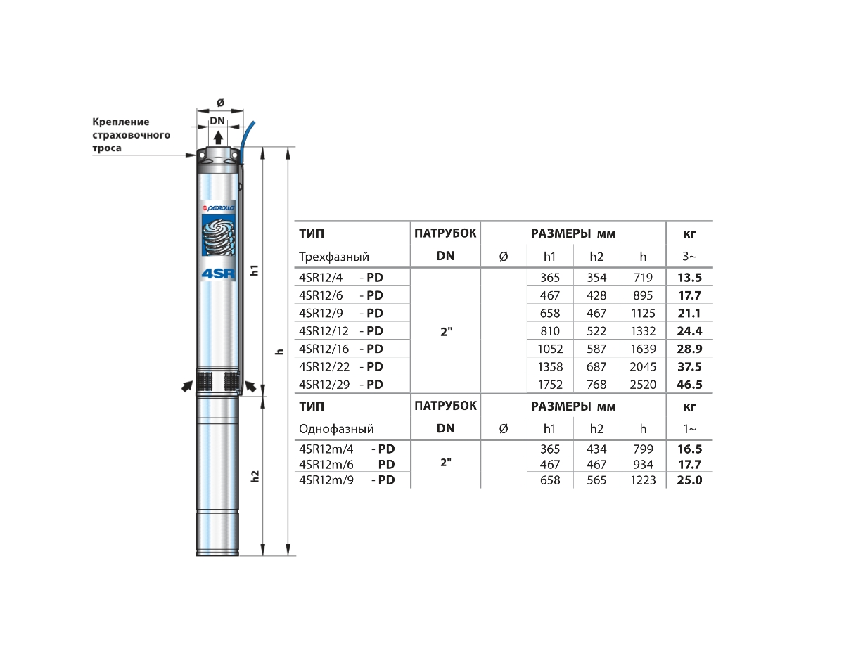 Погружные скважинные насосы 4SR производитель PEDROLLO (Италия) — предназначены для подачи чистой холодной воды (без абразивных и волокнистых включений) из скважин, глубоких колодцев и открытых водоемов.