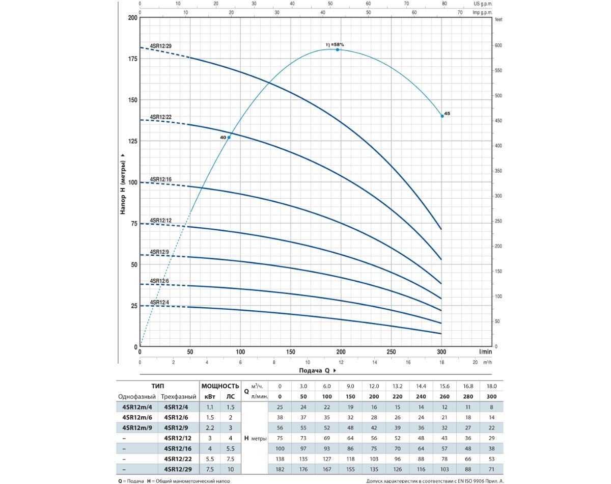 Насосы 4SR — это промышленный центробежный многоступенчатый глубинный насос, агрегатированный погружным трехфазным 400B (50 Гц) электродвигателем серии PD или PS (электродвигатель PS обладают высоким КПД). Корпус насосной части и двигателя изготовлен из нержавеющей стали AISI 304.