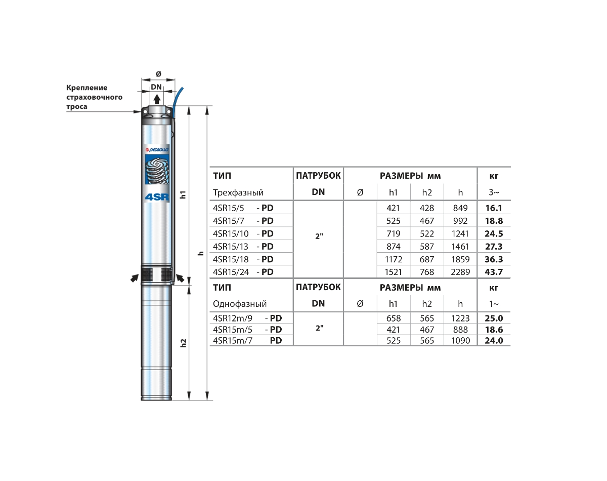 Погружные скважинные насосы 4SR производитель PEDROLLO (Италия) — предназначены для подачи чистой холодной воды (без абразивных и волокнистых включений) из скважин, глубоких колодцев и открытых водоемов.