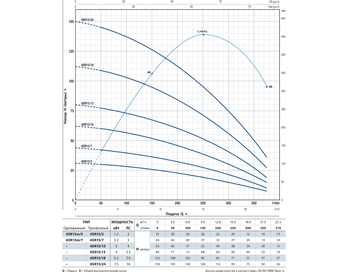 Всасывающее отверстие располагается в средней части насоса и защищено фильтрующей решеткой. В конструкции насосов 4SR нет материалов, способных оказать негативное влияние на качество перекачиваемой воды – насосы полностью соответствует гигиеническим требованиям.