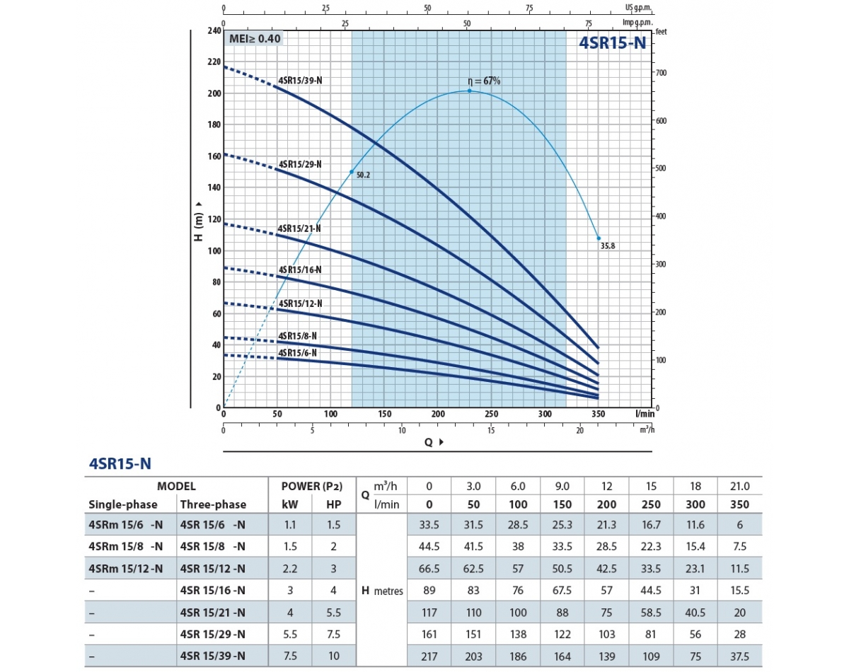 Насосы 4SR — это промышленный центробежный многоступенчатый глубинный насос, агрегатированный погружным трехфазным 400B (50 Гц) электродвигателем серии PD или PS (электродвигатель PS обладают высоким КПД). Корпус насосной части и двигателя изготовлен из нержавеющей стали AISI 304.