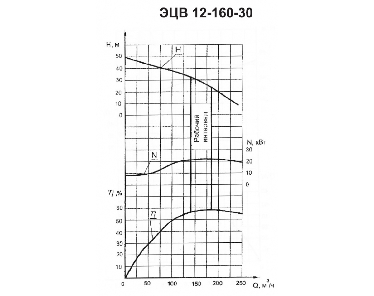 Серия ЭЦВ — это промышленный центробежный многоступенчатый глубинный насос, агрегатированный погружным трехфазным электродвигателем серии ПЭДВ. Корпус насоса стальной, покрыт ударопрочной эмалью зеленого цвета.
