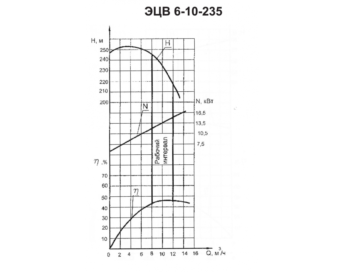 Серия ЭЦВ — это промышленный центробежный многоступенчатый глубинный насос, агрегатированный погружным трехфазным электродвигателем серии ПЭДВ. Корпус насоса стальной, покрыт ударопрочной эмалью зеленого цвета.