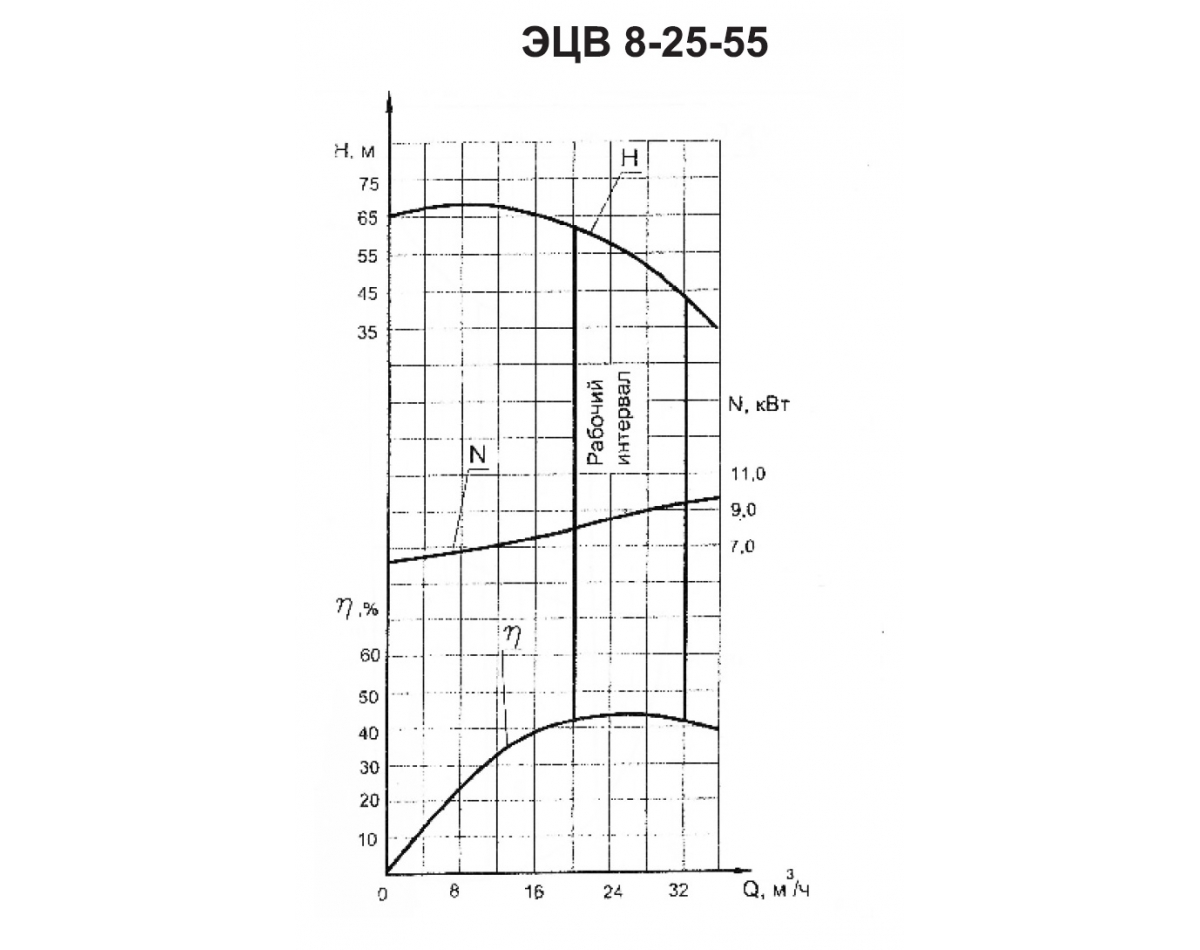 5.5 кВт, H-55 м, Q-25 куб.м\час