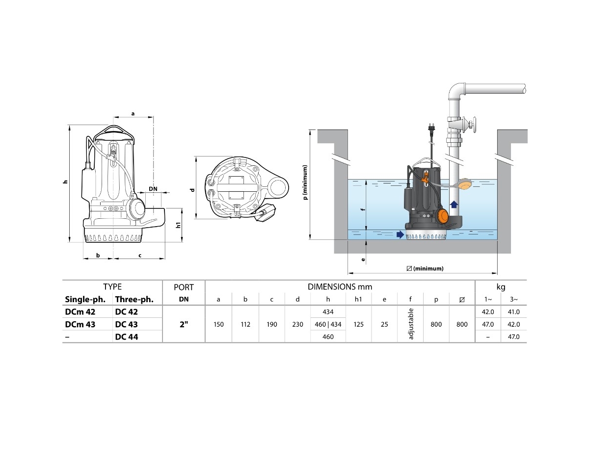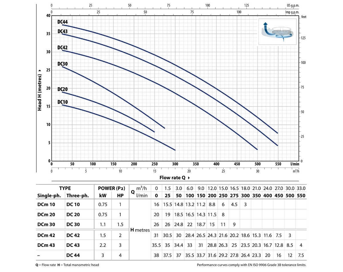 Погружные насосы DC изготовлены из толстостенного чугуна, характеризующегося высокой прочностью, стойкостью к абразивному воздействию и долговечностью, и рекомендуются для дренажа чистой или слегка загрязнённой воды