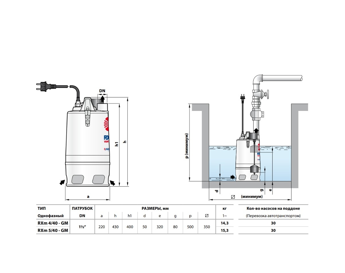 дренажный НАСОС PEDROLLO RXm 4/40 VORTex /GM |