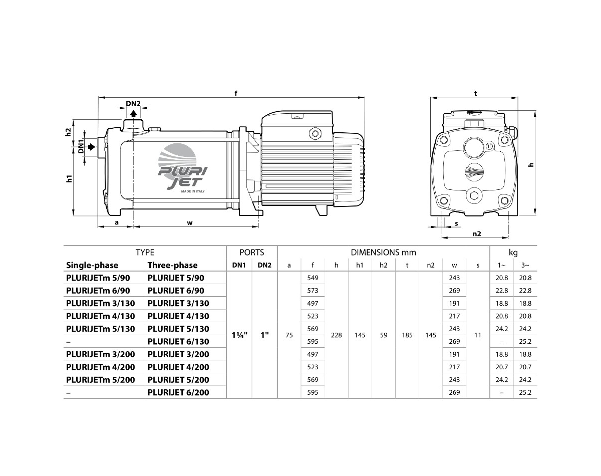 Самовсасывающие насосы PLURIJET рекомендуются для перекачивания чистой воды, даже при содержании в ней повышенного количества воздуха, и жидкостей, химически неагрессивных по отношению к конструкционным материалам насоса.