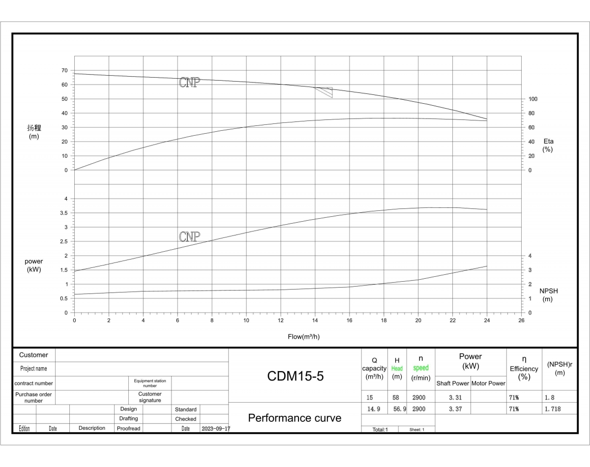 НАСОС CNP CDM-E15-5 с ЧАСтотным регулированием |