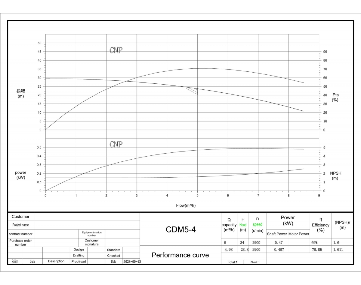 Вертикальный многоступенчатый центробежный насос серии CDMF-E с частотным регулированием. Может использоваться для перекачивания различных жидкостей, включая воду и различные технологические жидкости в широком диапазоне значений температуры, подачи, напора и химического состава перекачиваемой среды.