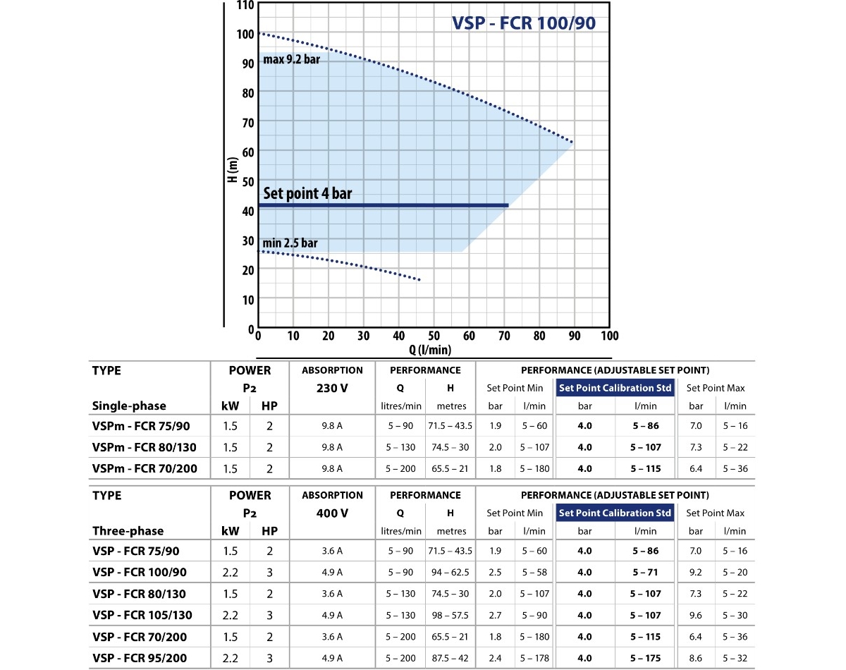 Насосы VSP идеально подходят для бытовых и гражданских систем наддува, насосная установка VSP, благодаря инверторному регулятору скорости, может модулировать обороты двигателя в зависимости от количества воды, используемой системой, снижая потребление энергии и постоянно поддерживая давление в системе, даже при изменении количества пользователей.