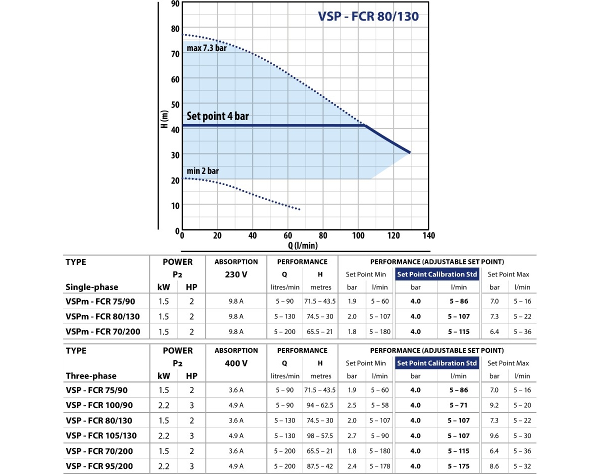 Насосы VSP идеально подходят для бытовых и гражданских систем наддува, насосная установка VSP, благодаря инверторному регулятору скорости, может модулировать обороты двигателя в зависимости от количества воды, используемой системой, снижая потребление энергии и постоянно поддерживая давление в системе, даже при изменении количества пользователей.