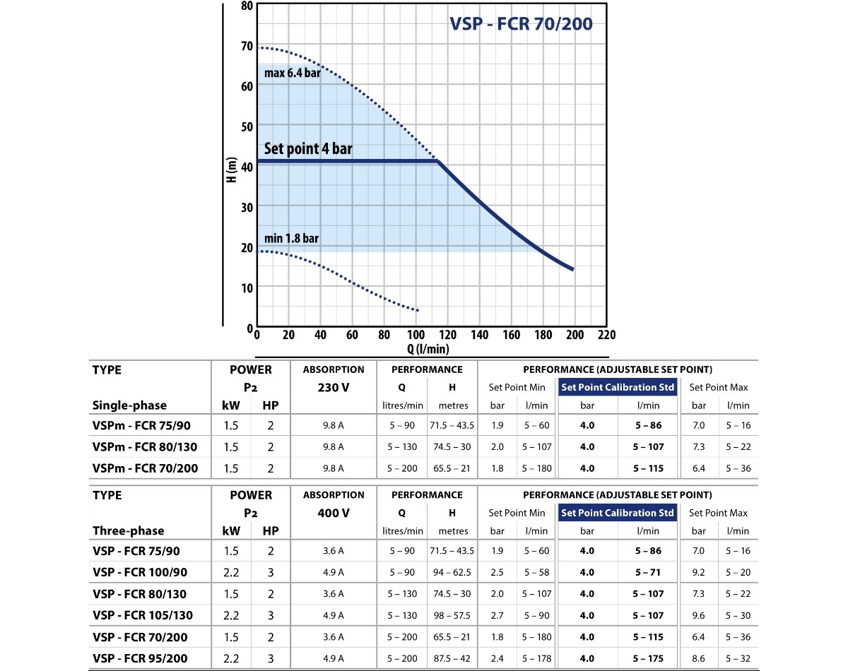 Насосы VSP идеально подходят для бытовых и гражданских систем наддува, насосная установка VSP, благодаря инверторному регулятору скорости, может модулировать обороты двигателя в зависимости от количества воды, используемой системой, снижая потребление энергии и постоянно поддерживая давление в системе, даже при изменении количества пользователей.