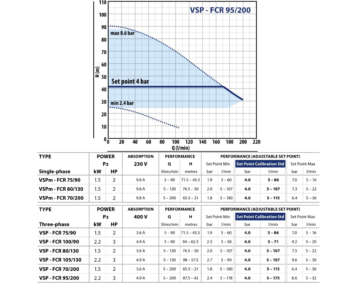 Насосы VSP идеально подходят для бытовых и гражданских систем наддува, насосная установка VSP, благодаря инверторному регулятору скорости, может модулировать обороты двигателя в зависимости от количества воды, используемой системой, снижая потребление энергии и постоянно поддерживая давление в системе, даже при изменении количества пользователей.