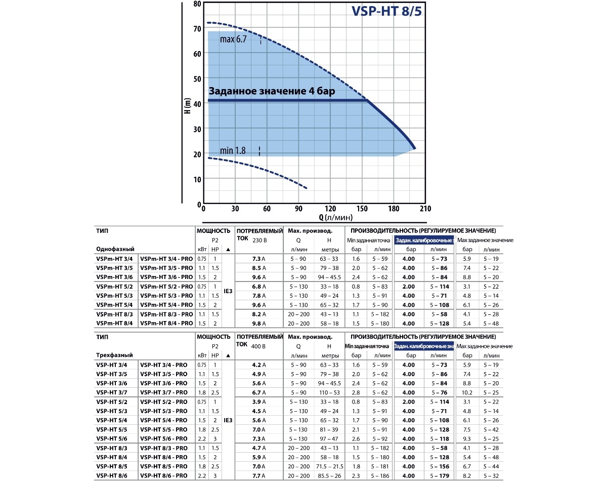 НАСОС PEDROLLO VSp-HT 8/5-PRO С ЧАСТОТНЫМ РЕГУЛИРОВАНИЕМ |