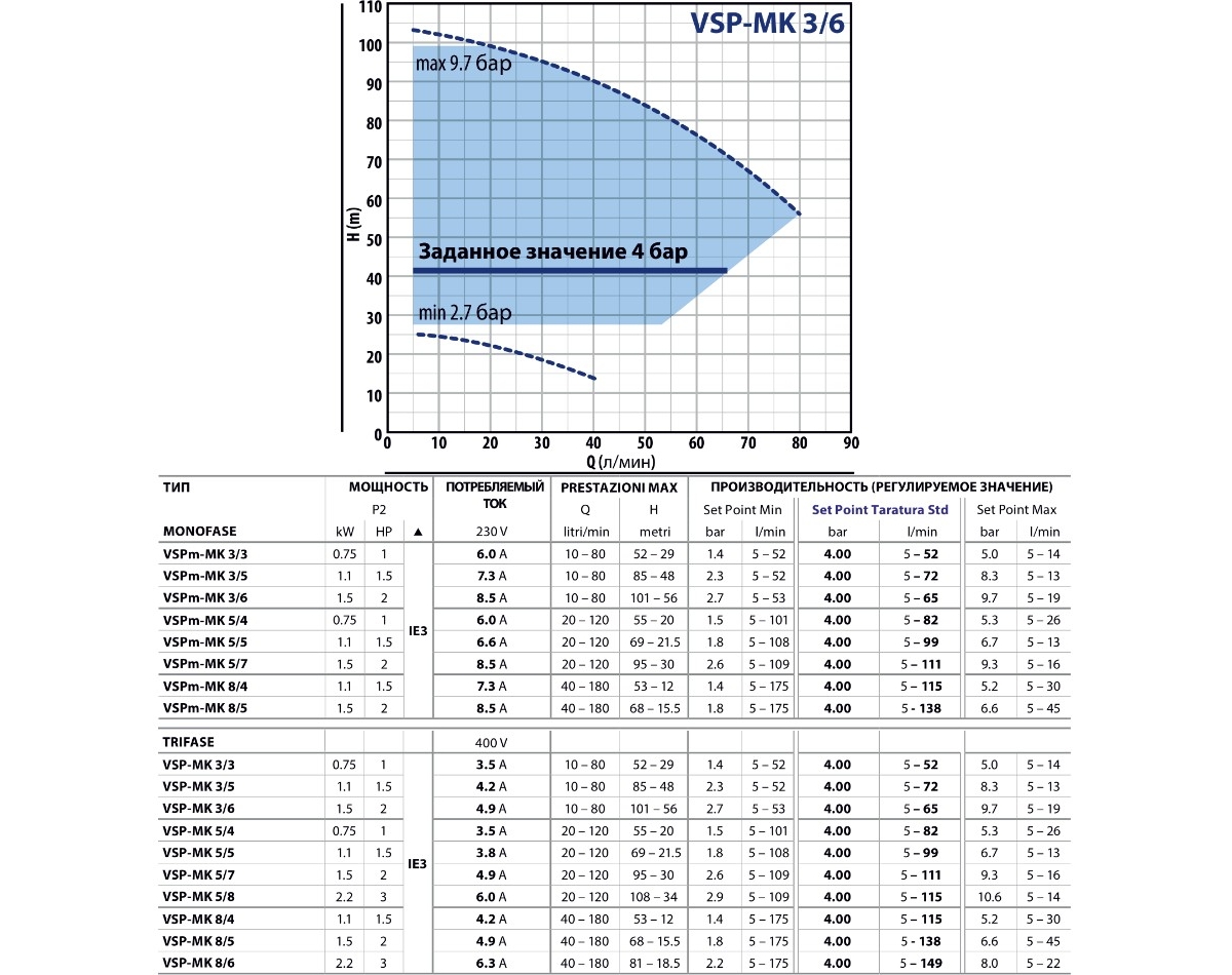 НАСОС PEDROLLO VSpm-mk 3/6 С ЧАСТОТНЫМ РЕГУЛИРОВАНИЕМ |