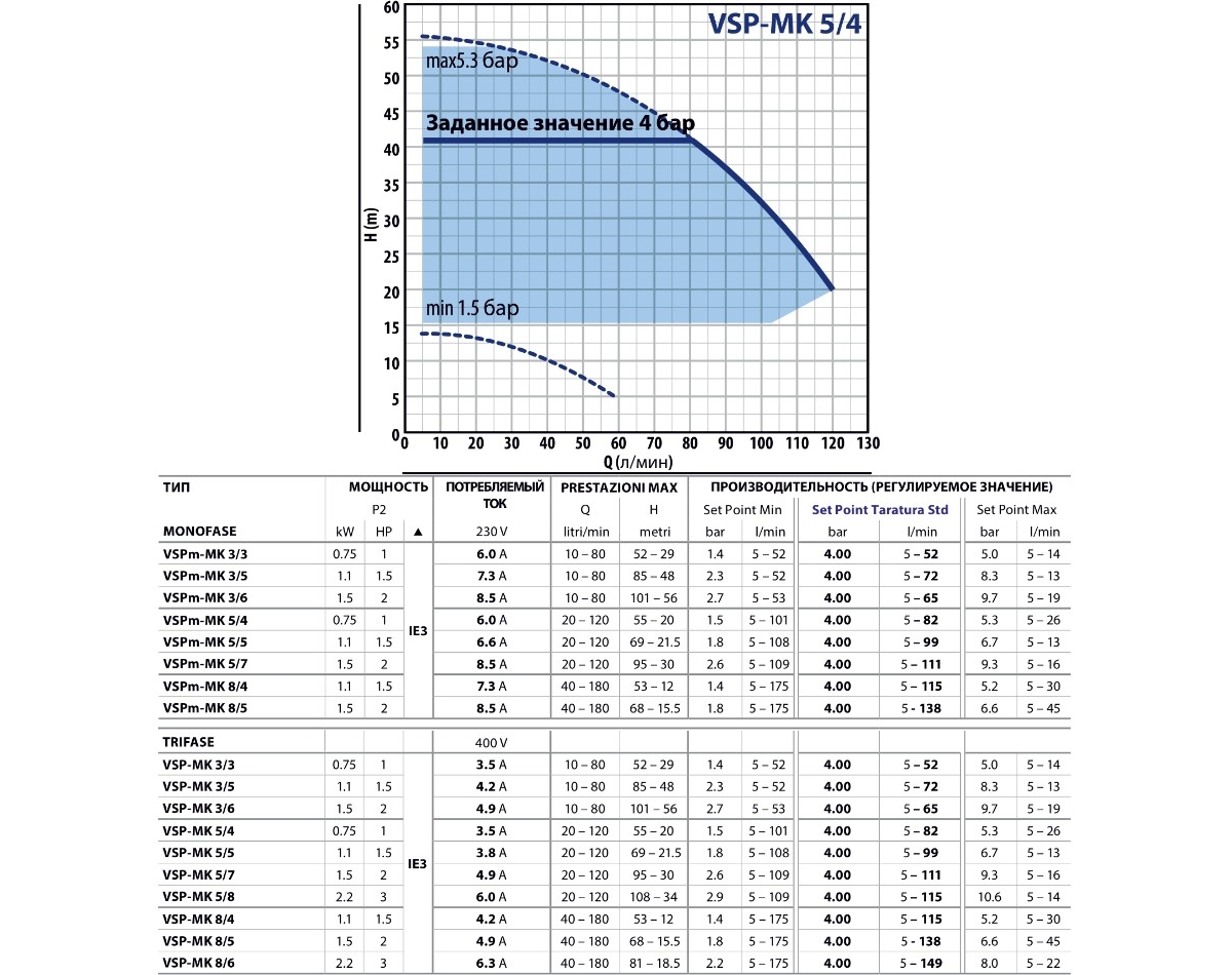 НАСОС PEDROLLO VSp-mk 5/4 С ЧАСТОТНЫМ РЕГУЛИРОВАНИЕМ |
