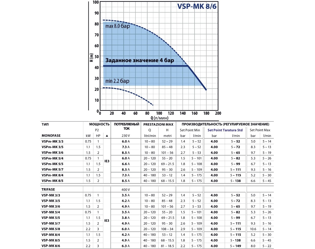 НАСОС PEDROLLO VSp-mk 8/6 С ЧАСТОТНЫМ РЕГУЛИРОВАНИЕМ |