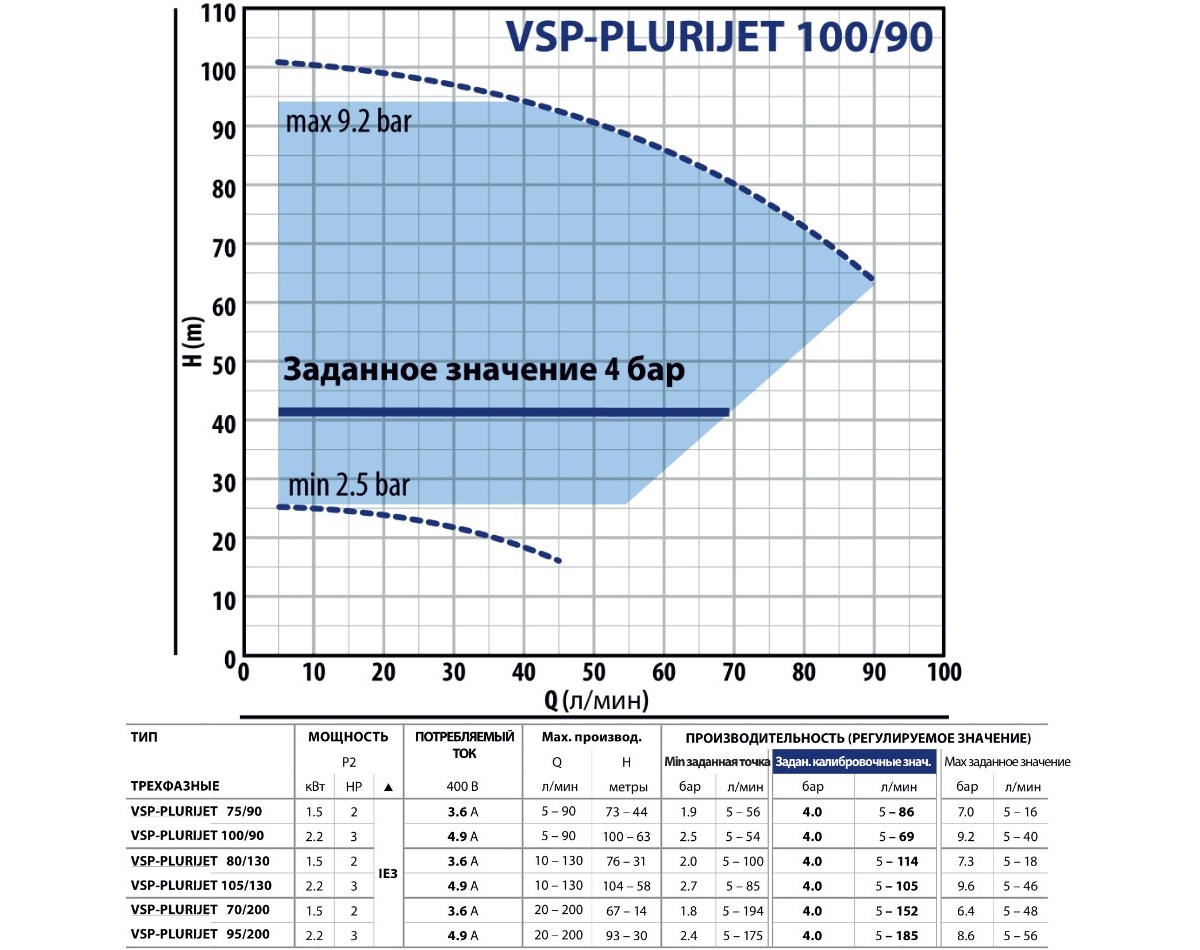 НАСОС PEDROLLO VSp-PLURIJET 100/90 С ЧАСТОТНЫМ РЕГУЛИРОВАНИЕМ |