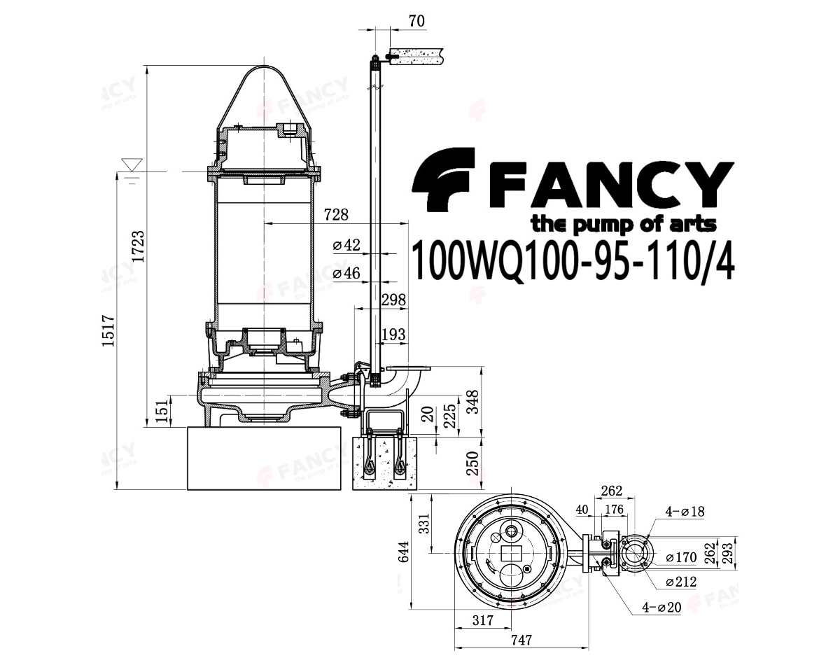 Промышленный погружной канализационный насос FANCY серии WQ используется для отвода канализационных, сточных, грунтовых, поверхностных и дренажных вод. Насос не предназначен для перекачки длинно волокнистых включений (тряпки, веревки). Стандартное исполнение насоса 3*380В, без поплавкового выключателя. Для полноценной работы насоса в автоматическом режиме рекомендуется подключение строго через защитную автоматику: шкаф управления или пульт управления насосами! Возможно исполнение насоса 1*230В со встроенным поплавковым выключателем.