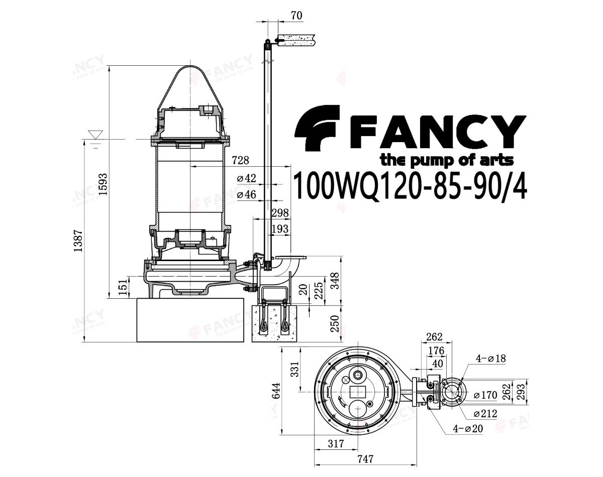 Промышленный погружной канализационный насос FANCY серии WQ используется для отвода канализационных, сточных, грунтовых, поверхностных и дренажных вод. Насос не предназначен для перекачки длинно волокнистых включений (тряпки, веревки). Стандартное исполнение насоса 3*380В, без поплавкового выключателя. Для полноценной работы насоса в автоматическом режиме рекомендуется подключение строго через защитную автоматику: шкаф управления или пульт управления насосами! Возможно исполнение насоса 1*230В со встроенным поплавковым выключателем.