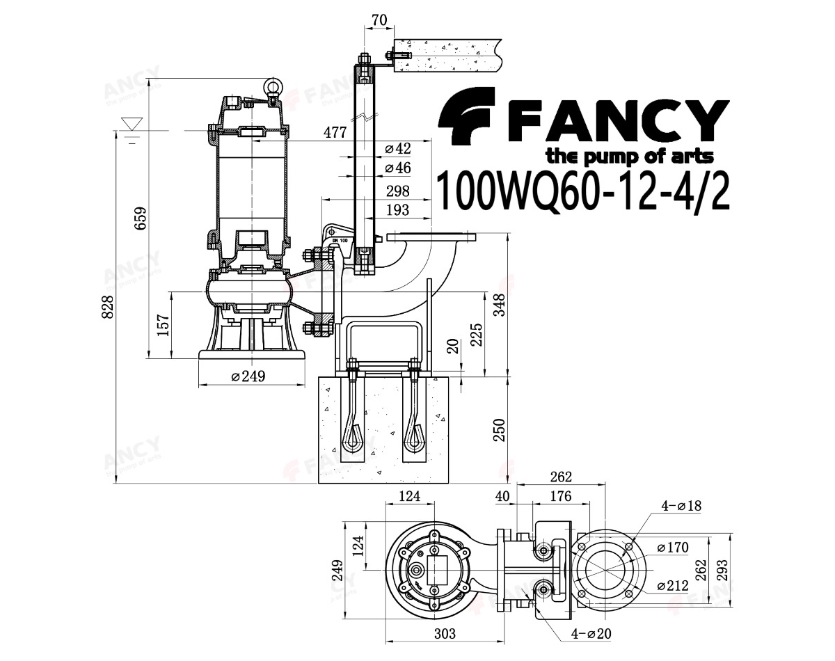 Промышленный погружной канализационный насос FANCY серии WQ используется для отвода канализационных, сточных, грунтовых, поверхностных и дренажных вод. Насос не предназначен для перекачки длинно волокнистых включений (тряпки, веревки). Стандартное исполнение насоса 3*380В, без поплавкового выключателя. Для полноценной работы насоса в автоматическом режиме рекомендуется подключение строго через защитную автоматику: шкаф управления или пульт управления насосами! Возможно исполнение насоса 1*230В со встроенным поплавковым выключателем.