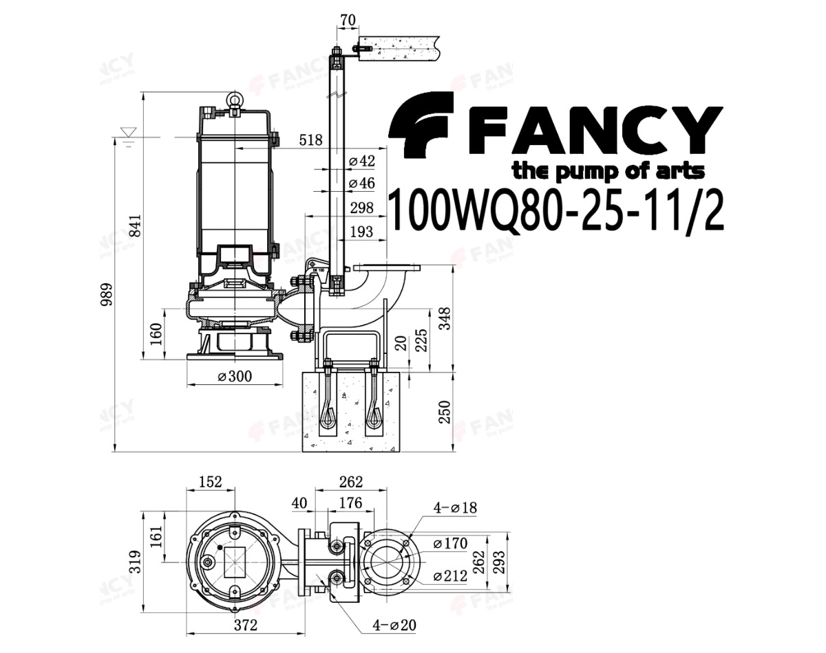 Промышленный погружной канализационный насос FANCY серии WQ используется для отвода канализационных, сточных, грунтовых, поверхностных и дренажных вод. Насос не предназначен для перекачки длинно волокнистых включений (тряпки, веревки). Стандартное исполнение насоса 3*380В, без поплавкового выключателя. Для полноценной работы насоса в автоматическом режиме рекомендуется подключение строго через защитную автоматику: шкаф управления или пульт управления насосами! Возможно исполнение насоса 1*230В со встроенным поплавковым выключателем.