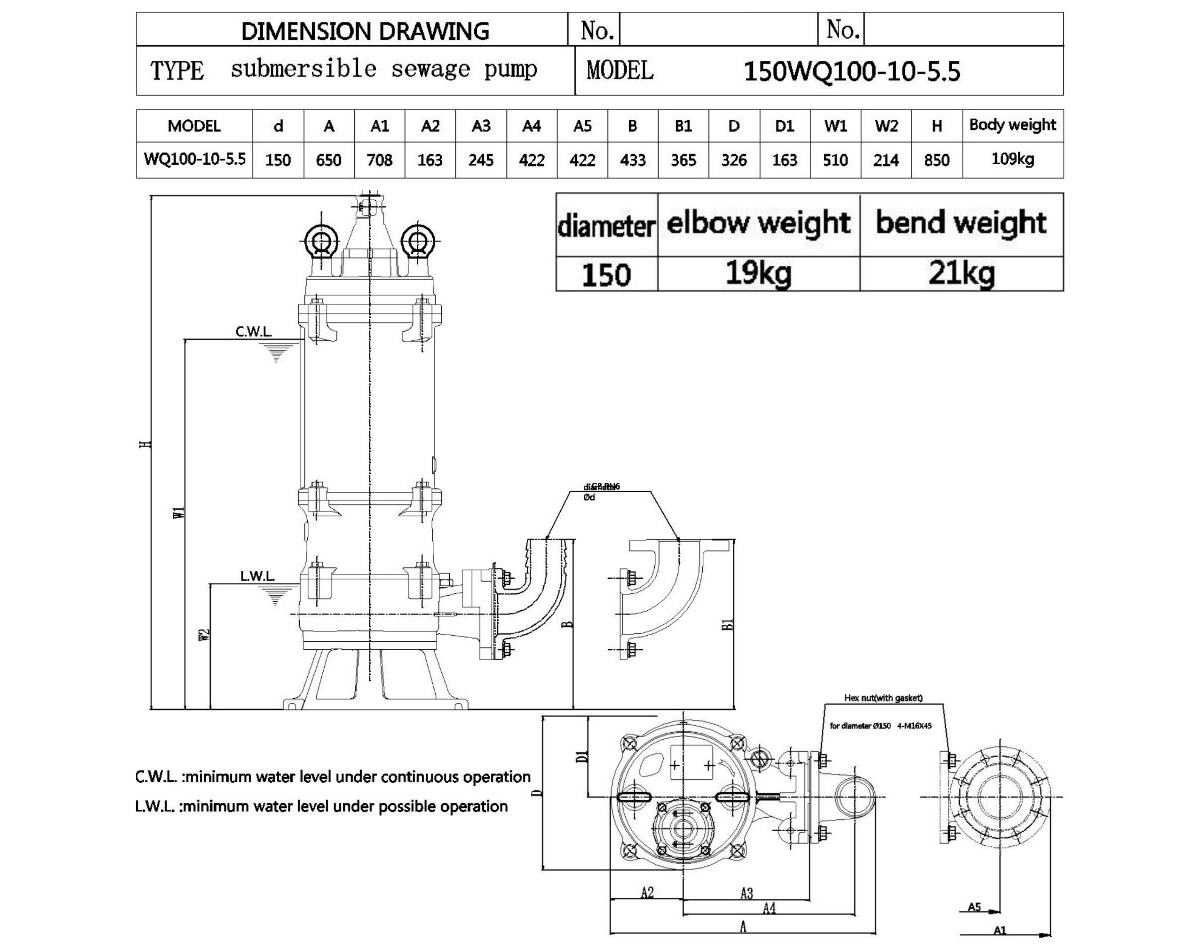 Канализационный насос 150WQ100-10-5.5