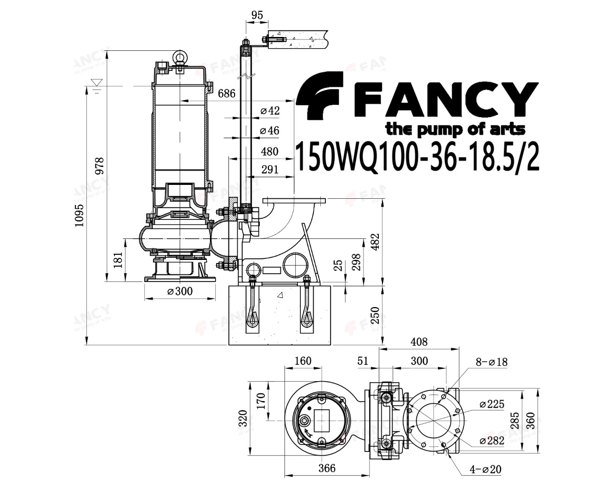 Промышленный погружной канализационный насос FANCY серии WQ используется для отвода канализационных, сточных, грунтовых, поверхностных и дренажных вод. Насос не предназначен для перекачки длинно волокнистых включений (тряпки, веревки). Стандартное исполнение насоса 3*380В, без поплавкового выключателя. Для полноценной работы насоса в автоматическом режиме рекомендуется подключение строго через защитную автоматику: шкаф управления или пульт управления насосами! Возможно исполнение насоса 1*230В со встроенным поплавковым выключателем.