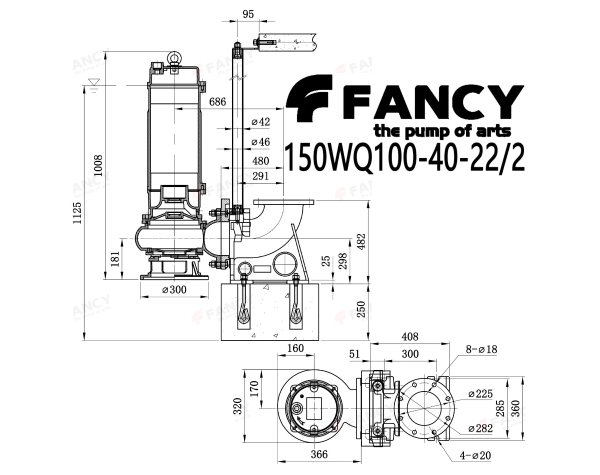 Промышленный погружной канализационный насос FANCY серии WQ используется для отвода канализационных, сточных, грунтовых, поверхностных и дренажных вод. Насос не предназначен для перекачки длинно волокнистых включений (тряпки, веревки). Стандартное исполнение насоса 3*380В, без поплавкового выключателя. Для полноценной работы насоса в автоматическом режиме рекомендуется подключение строго через защитную автоматику: шкаф управления или пульт управления насосами! Возможно исполнение насоса 1*230В со встроенным поплавковым выключателем.